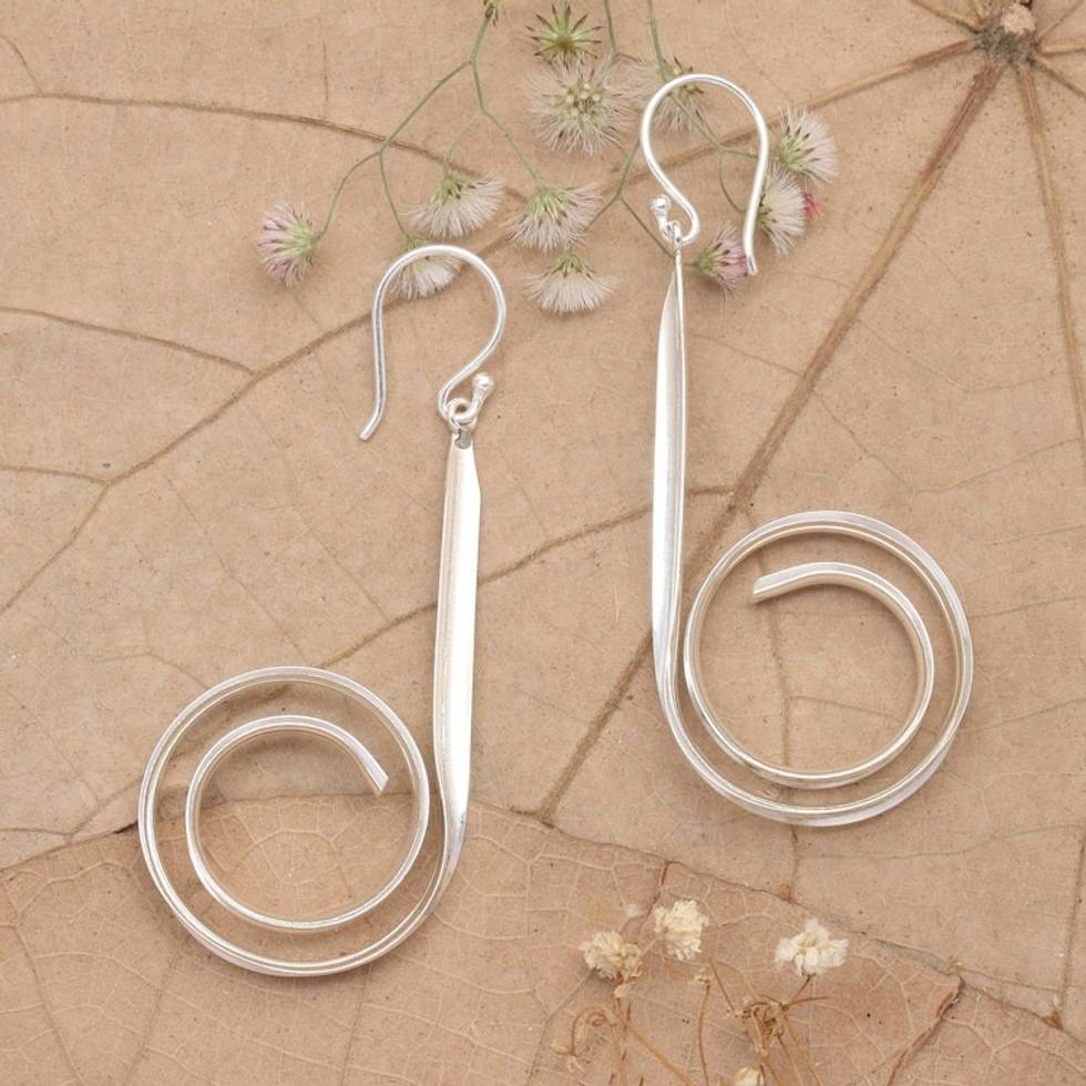 Polished Spiral Sterling Silver Dangle Earrings from Bali 'Divergent Twists' Item ID: 2671764426