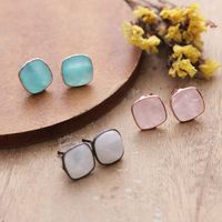Polished Square-Shaped Gemstone Stud Earrings Set of 3 'Heavenly Feelings' Item ID: 2669942074