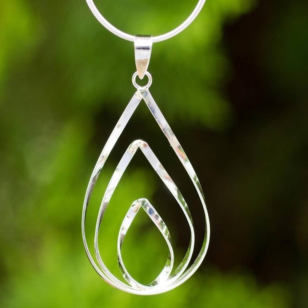Polished Sterling 925 Fair Trade Pendant Necklace 'Lotus Flame' Item ID: 2671640772
