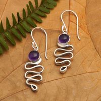 Polished Sterling Silver and Amethyst Dangle Earrings 'Zigzag Wisdom' Item ID: 2671669589
