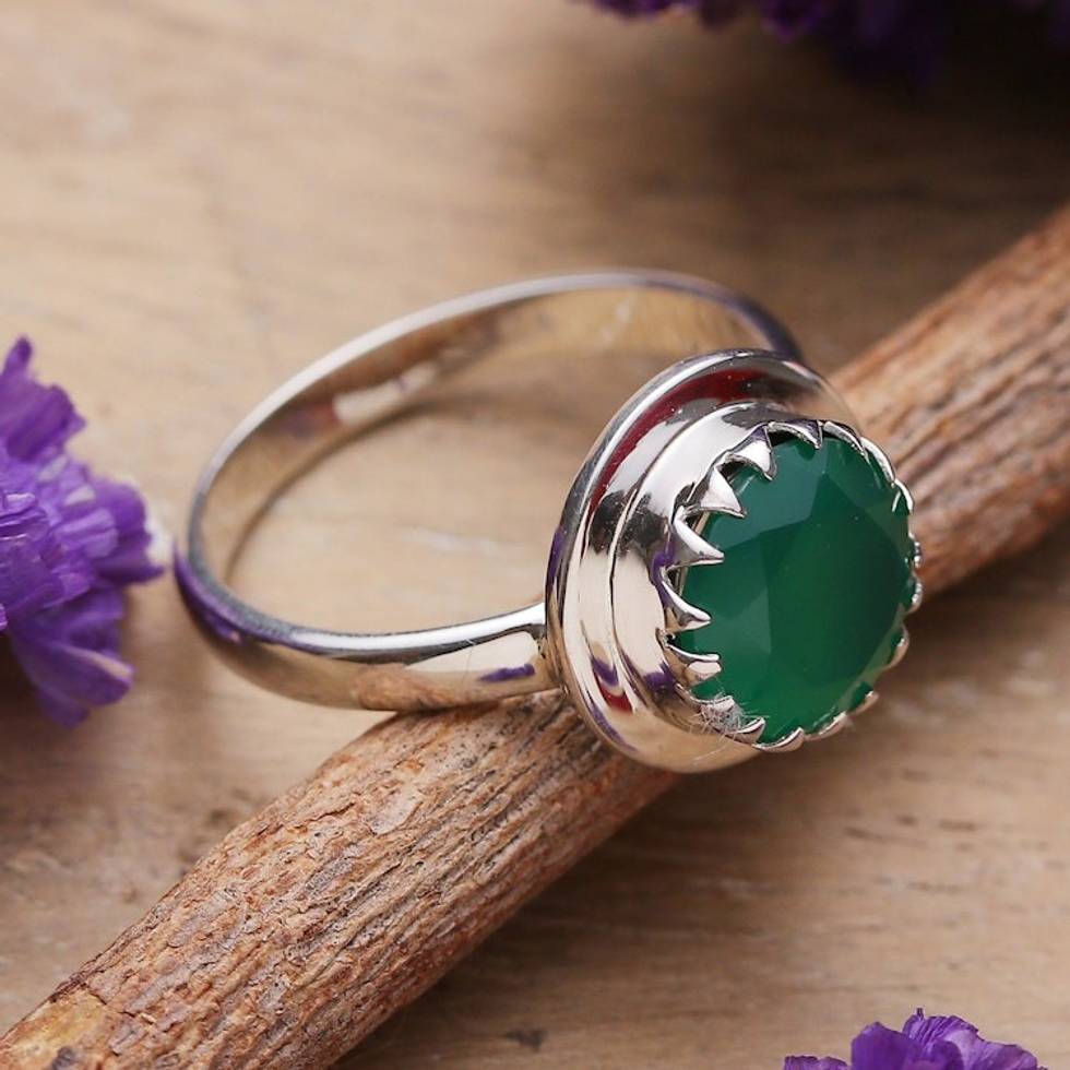 Polished Sterling Silver and Green Onyx Single Stone Ring 'Majestic Green' Item ID: 2671782932