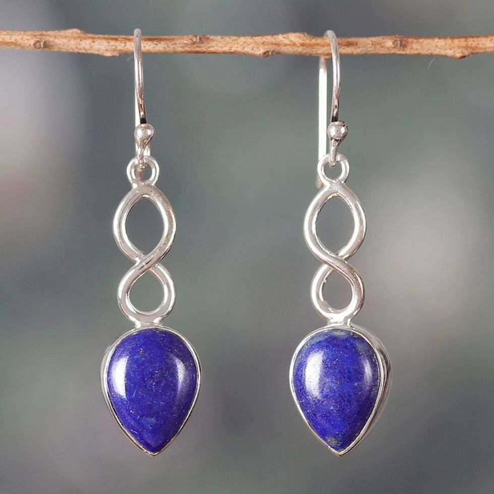 Polished Sterling Silver and Lapis Lazuli Dangle Earrings 'Royal Destiny' Item ID: 2671782314