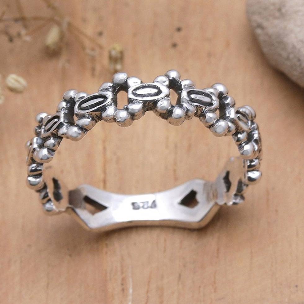 Polished Sterling Silver Band Ring Crafted in Bali 'Nobility Traces' Item ID: 2671763217