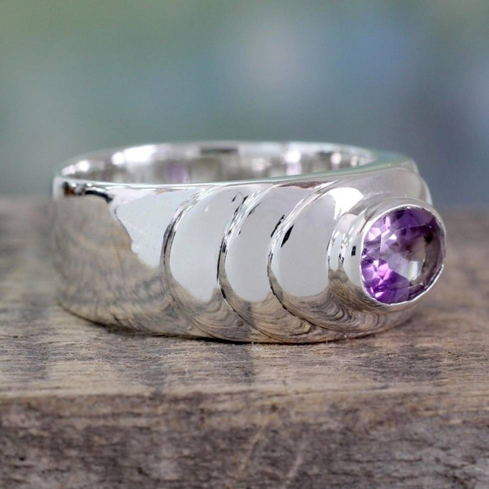 Polished Sterling Silver Band Ring with 1.5 Carat Amethyst 'Purple Splash' Item ID: 2671793607