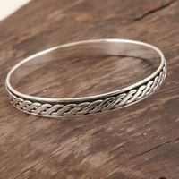 Polished Sterling Silver Bangle Bracelet Crafted in India 'Majestic Paths' Item ID: 2671786804