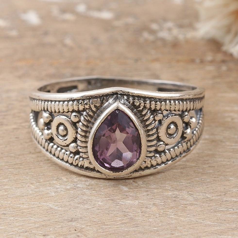 Polished Sterling Silver Cocktail Ring with an Amethyst Gem 'Wisdom Drop' Item ID: 2671817686