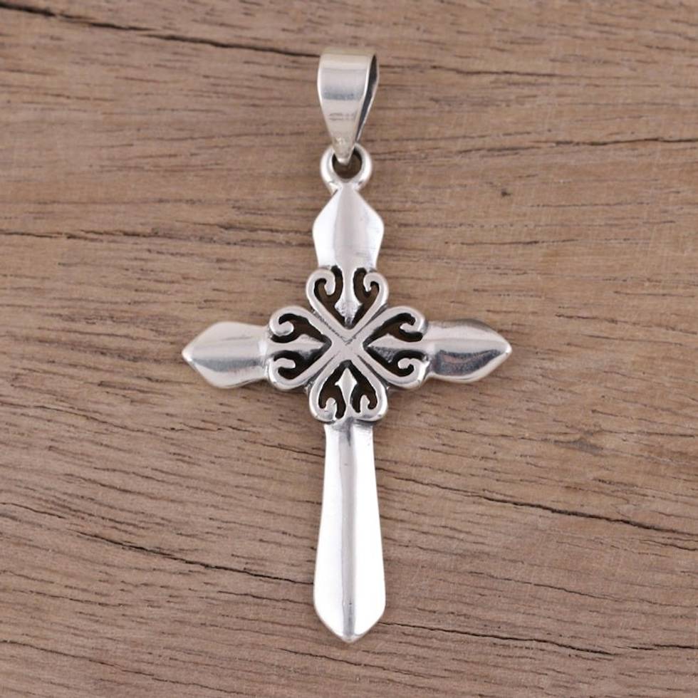 Polished Sterling Silver Cross Pendant with Heart Motifs 'Heart of Faith' Item ID: 2669925462