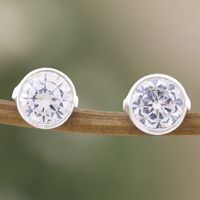 Polished Sterling Silver Cubic Zirconia Stud Earrings 'White Night' Item ID: 2671625553