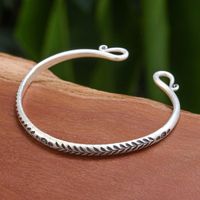 Polished Sterling Silver Cuff Bracelet with Hill Tribe Motif 'Sophisticated Serenity' Item ID: 2671640843