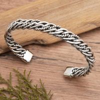 Polished Sterling Silver Cuff Bracelet with Rope Details 'Classic Encounters' Item ID: 2676657660