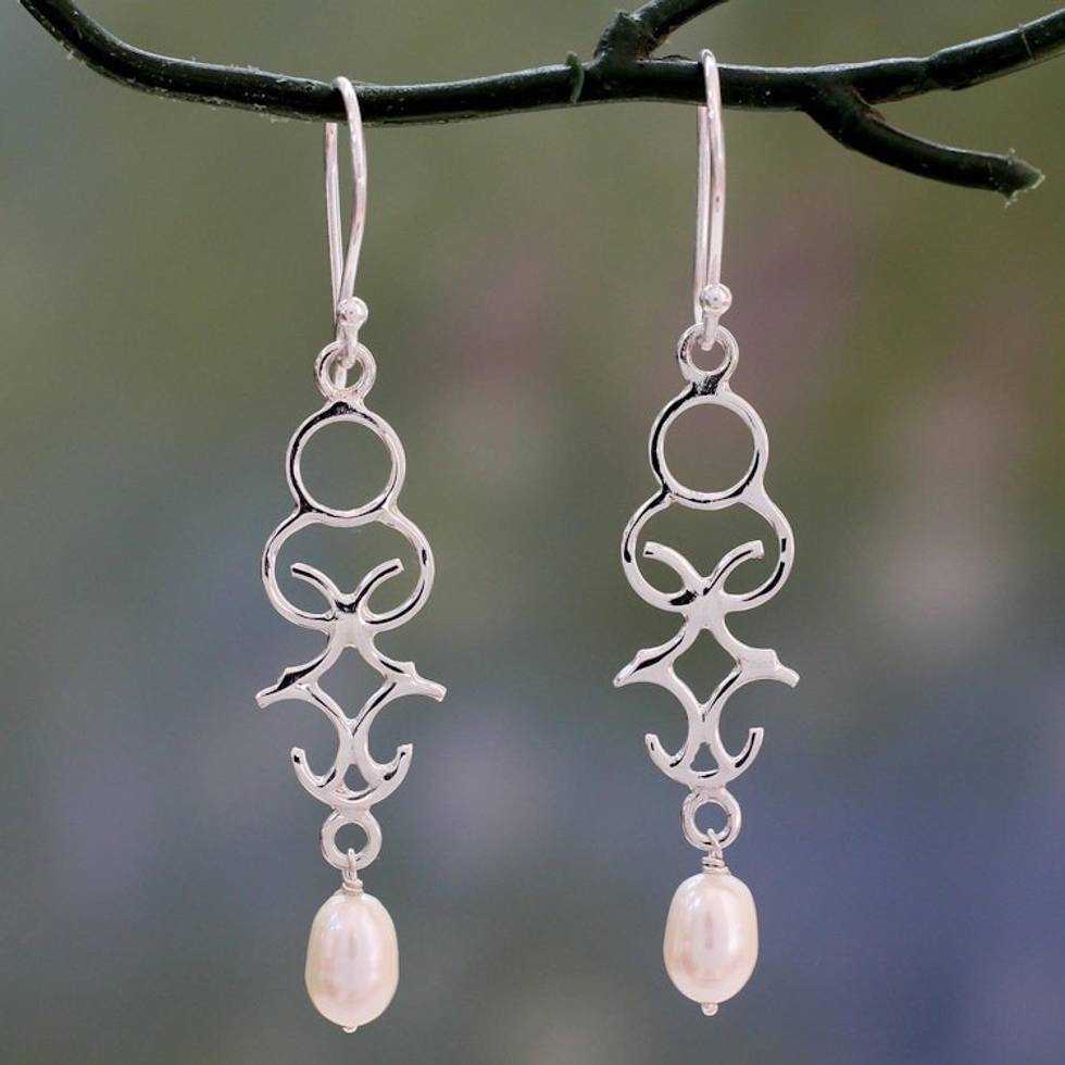 Polished Sterling Silver Dangle Earring with Cultured Pearls 'Sublime Trellis' Item ID: 2671793483