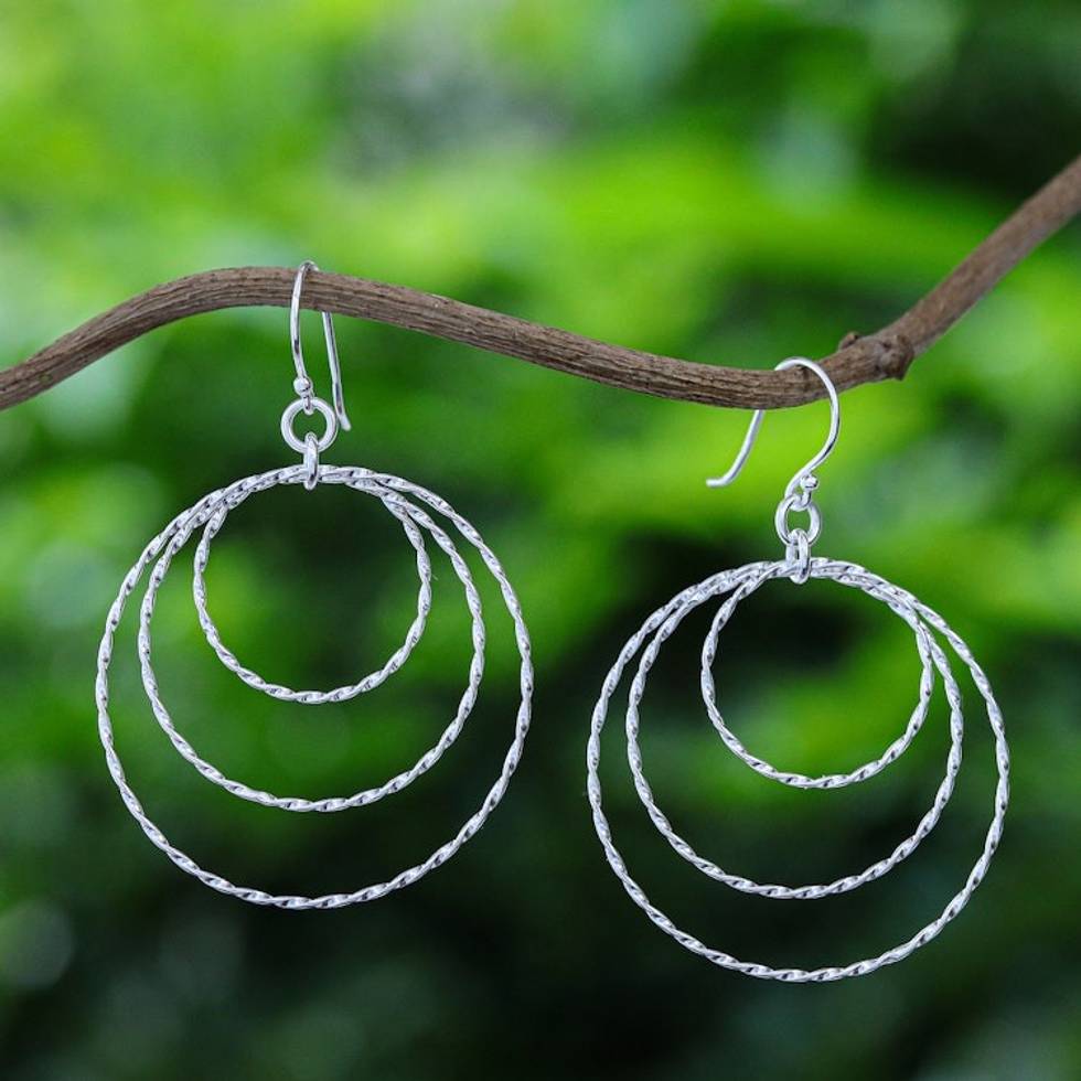 Polished Sterling Silver Dangle Earrings Crafted in Thailand 'Avant-Garde Swirls' Item ID: 2671798046