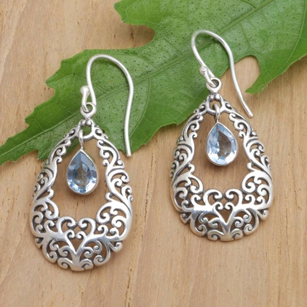 The blue topaz is so clear and beautiful. The craftsmanship of both earrings excellent. I love wearing these. I've been looking for years for something like these earrings. Perfect size and color. Thank you Komang!