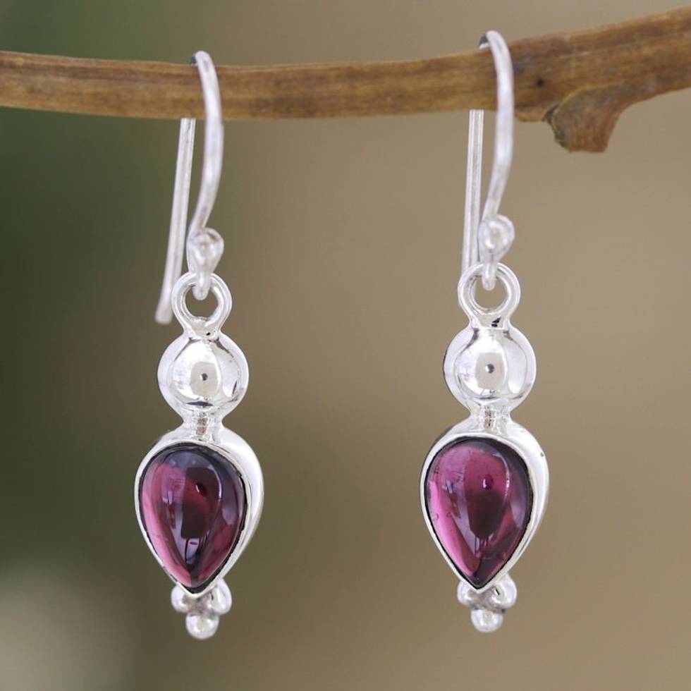 Polished Sterling Silver Dangle Earrings with Faceted Garnet 'Noble Passion' Item ID: 2671786992