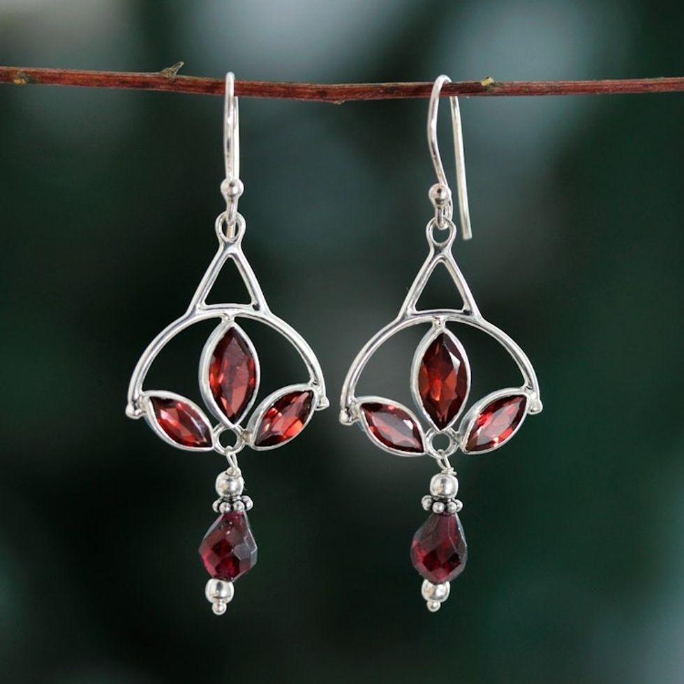 Polished Sterling Silver Dangle Earrings with Garnet Stones 'Enthralling Red' Item ID: 2671625407