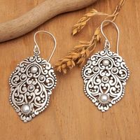 Polished Sterling Silver Dangle Earrings with Grey Pearls 'Balinese Inspiration' Item ID: 2671764636