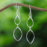 These beautiful earrings are my second piece from Ms. Pichaya, and so very different from the "Love Knot" piece I purchased first! These are endless hammered hoops that are one piece which just slip into the ear, each end "bypassing" the other to create a closure. They are very secure and so light, you hardly notice that you wearing them, but their size and large silvery presence lets you know they're there! Again, nice job, Ms. Pichaya!