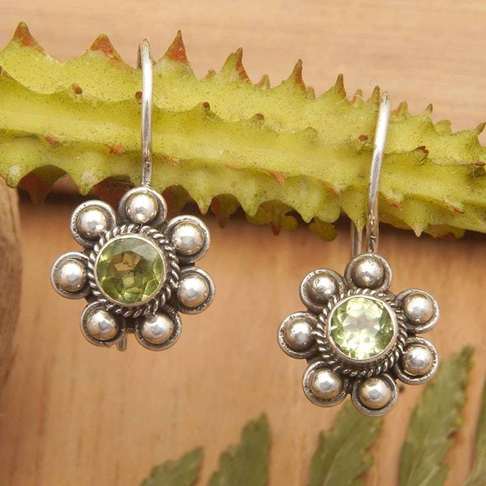 Polished Sterling Silver Drop Earrings with Peridot Gems 'Fortune Planets' Item ID: 2676660872