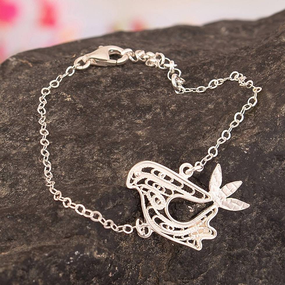 Polished Sterling Silver Filigree Bracelet with Dove Pendant 'World Peace in Flight' Item ID: 2671697843