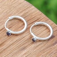 Polished Sterling Silver Hoop Earrings with Sapphire Gems 'The Eternal Prophecy' Item ID: 2669925812