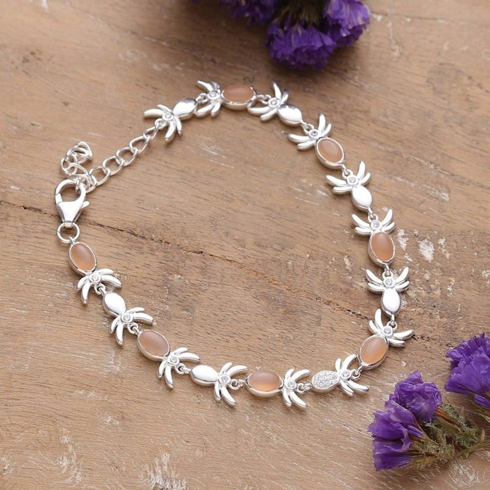 Polished Sterling Silver Leafy Moonstone Link Bracelet 'Tender Olympus' Item ID: 2671783093