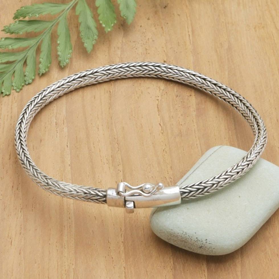 Polished Sterling Silver Naga Chain Bracelet from Bali 'Sophisticated Embrace' Item ID: 2669922094