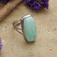 Polished Sterling Silver Natural Amazonite Cocktail Ring 'Calm Sea' Item ID: 2671667819