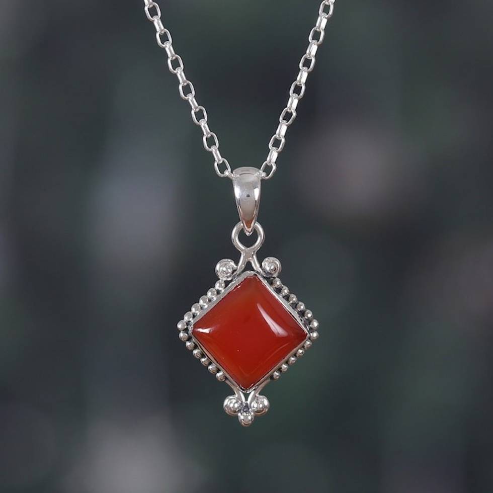 Polished Sterling Silver Natural Carnelian Pendant Necklace 'Manor of the Courageous' Item ID: 2671671279