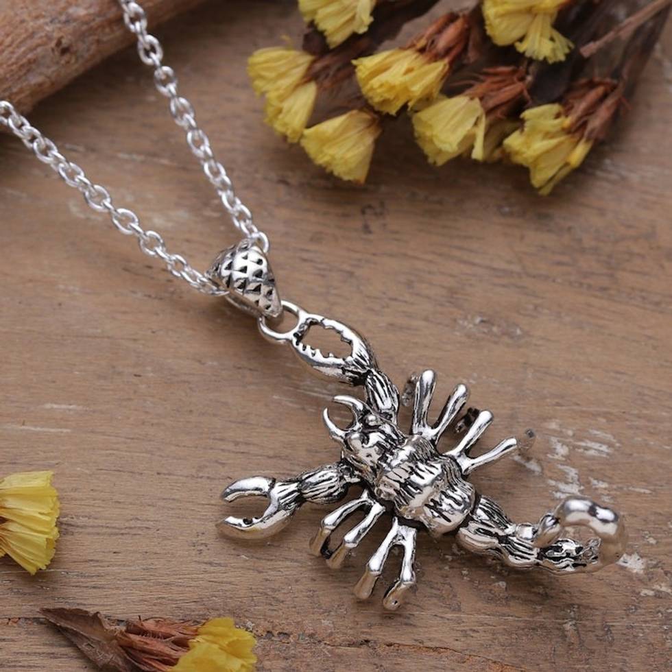 Polished Sterling Silver Necklace with Scorpion Pendant 'Scorpion Delight' Item ID: 2671782673