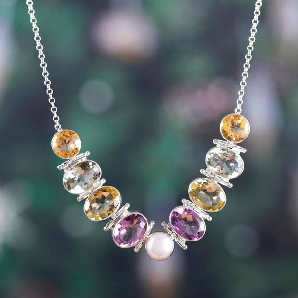Polished Sterling Silver Pendant Necklace with 48-Carat Gems 'Fusion of Gifts' Item ID: 2671786626