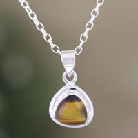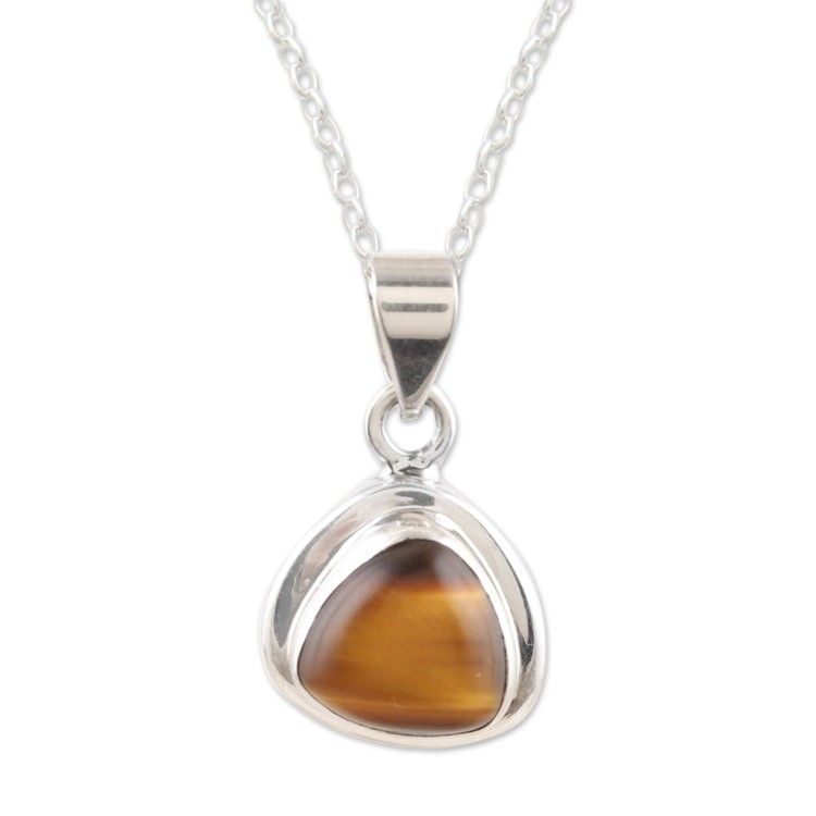 Polished Sterling Silver Pendant Necklace with Tiger's Eye 'Courage Realm' Item ID: 2671786673