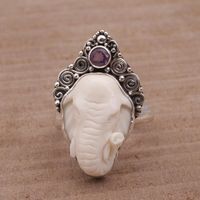 Polished Sterling Silver Ring with Elephant and Amethyst 'Elephant Grandeur' Item ID: 2669923038