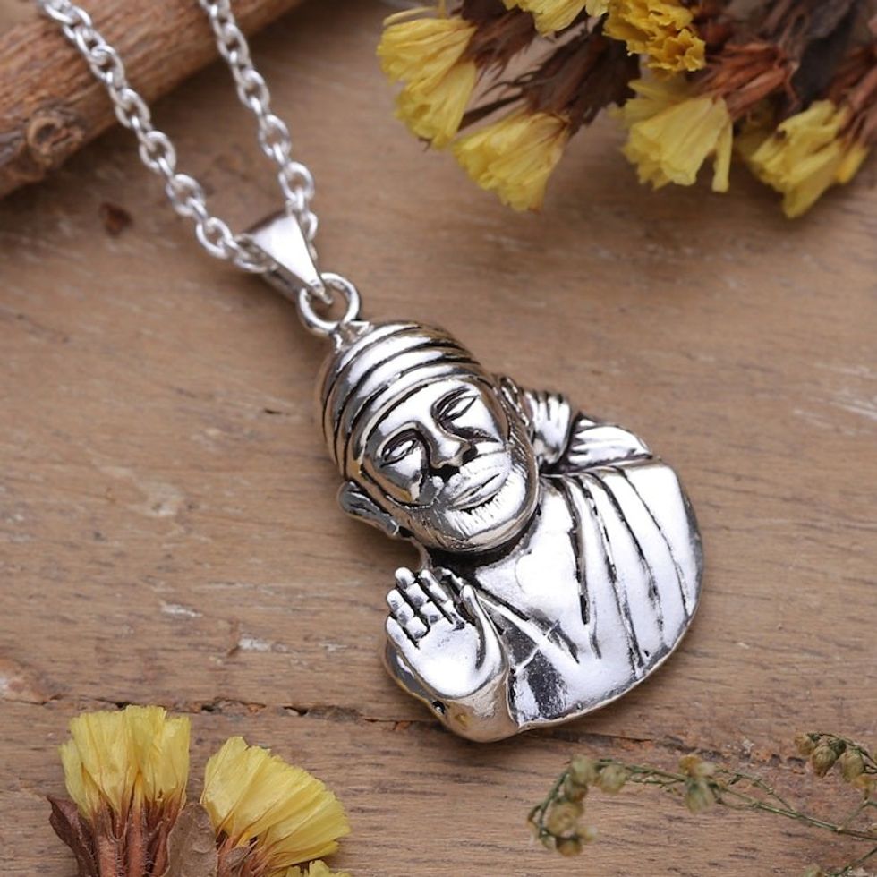 Polished Sterling Silver Shirdi Sai Baba Pendant Necklace 'Shirdi Sai Baba' Item ID: 2671782062