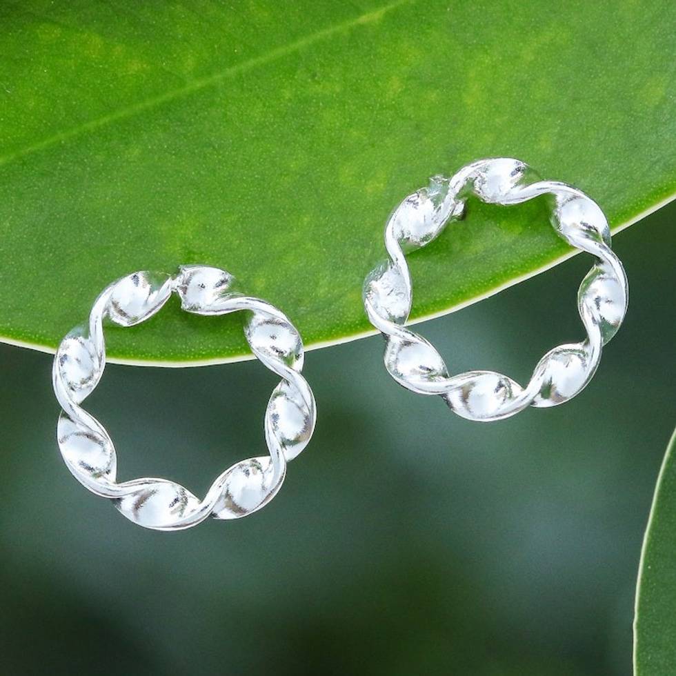 Polished Sterling Silver Spiraled Stud Earrings 'Mesmerizing Waves' Item ID: 2669927246