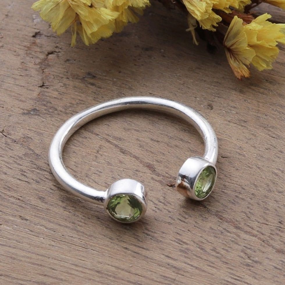 Polished Sterling Silver Wrap Ring with 2 Peridot Stones 'Trendy Gleam' Item ID: 2671786723