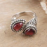 Polished Sterling Silver Wrap Ring with Natural Garnet Gems 'Red Perseverance' Item ID: 2676665767