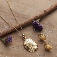 Polished Sunflower Brass Necklace and Earrings Jewelry Set 'Primaveral Grandeur' Item ID: 2671781055