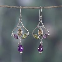 Polished Three-Carat Multi-Gemstone Dangle Earrings 'Universe Glamour' Item ID: 2671786619