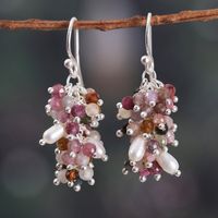 Polished Tourmaline and Cultured Pearl Cluster Earrings 'Fruits from the Creative' Item ID: 2671781788