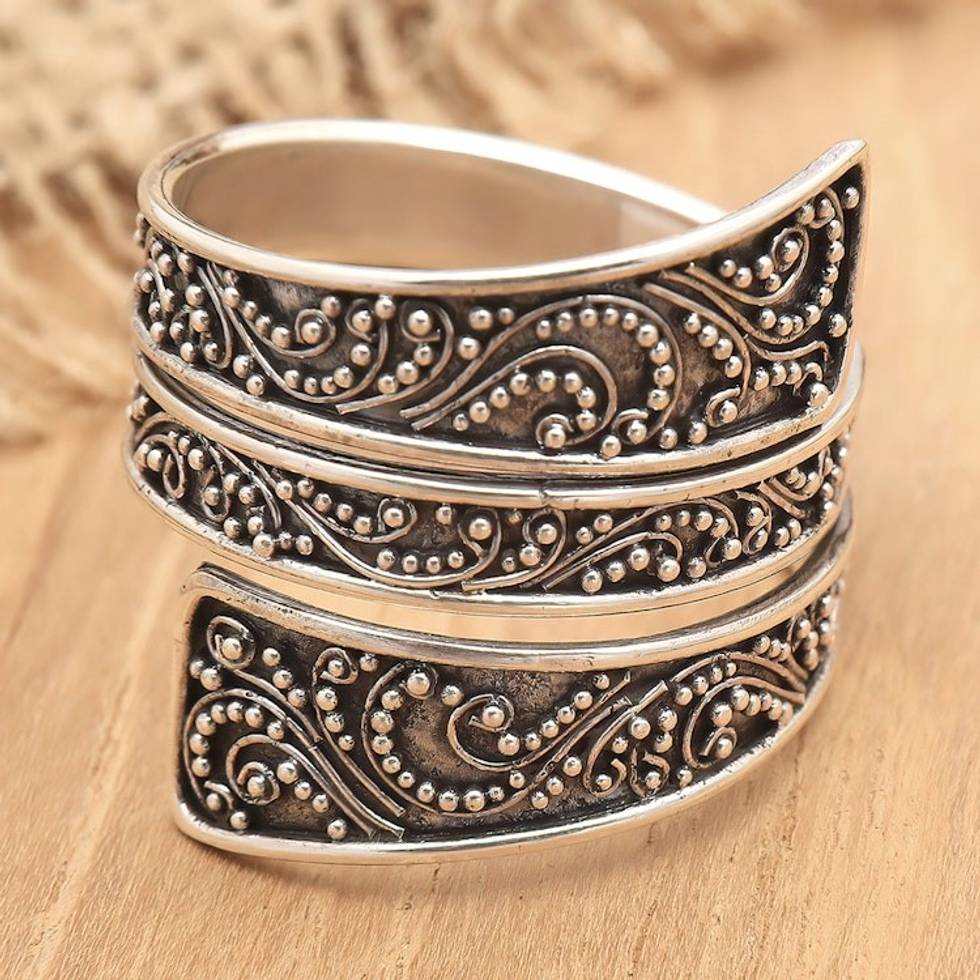 Polished Traditional Balinese Sterling Silver Wrap Ring 'Meet Me in Bali' Item ID: 2671667464