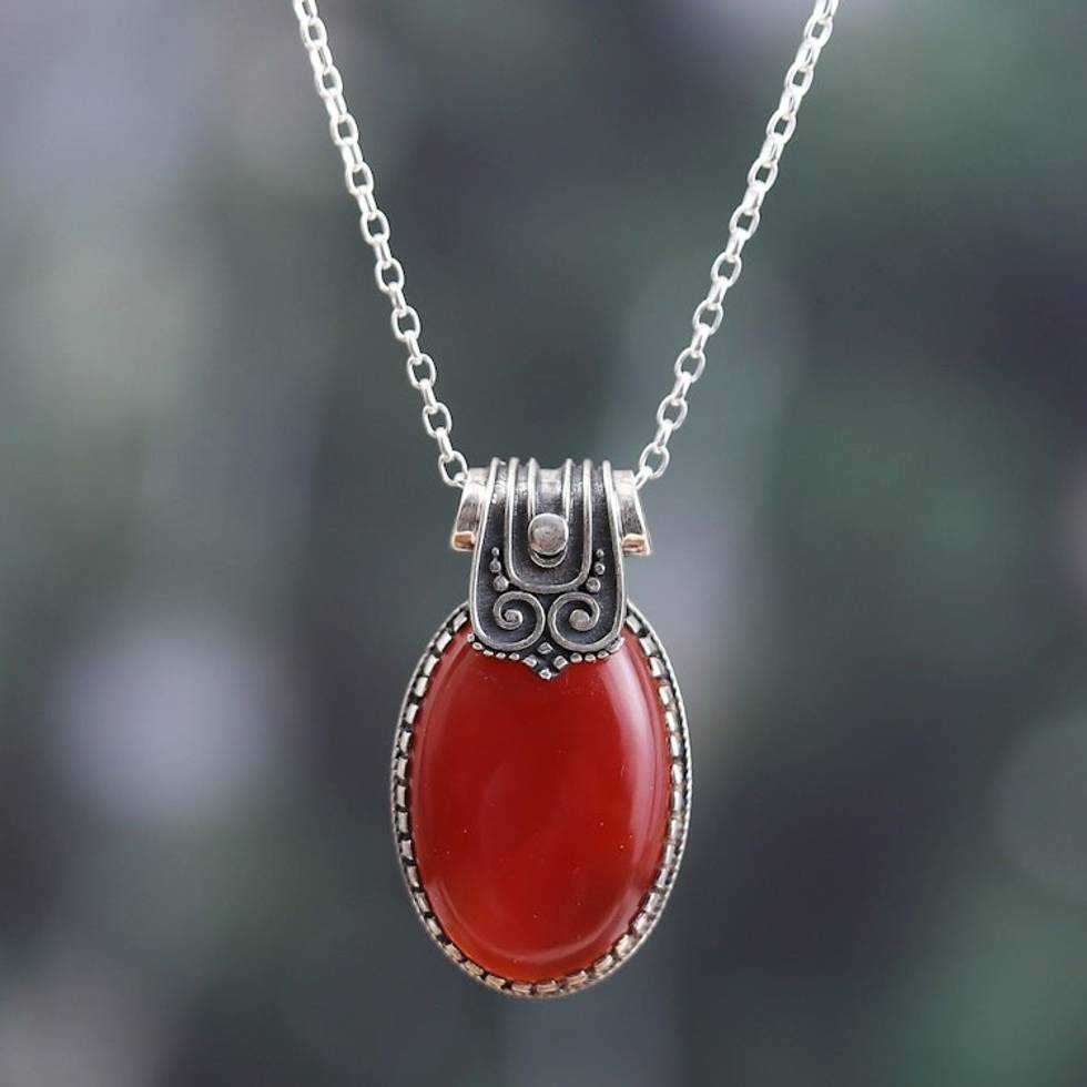 Polished Traditional Natural Carnelian Pendant Necklace 'Flaming Sunset' Item ID: 2671623719