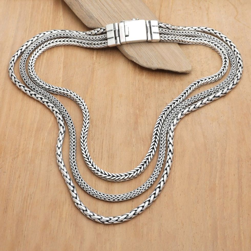 Polished Traditional Sterling Silver Chain Strand Necklace 'Triple Spell' Item ID: 2671613309