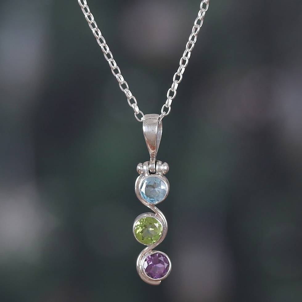 Polished Two-Carat Faceted Multi-Gemstone Pendant Necklace 'Serene Goddess' Item ID: 2671782104