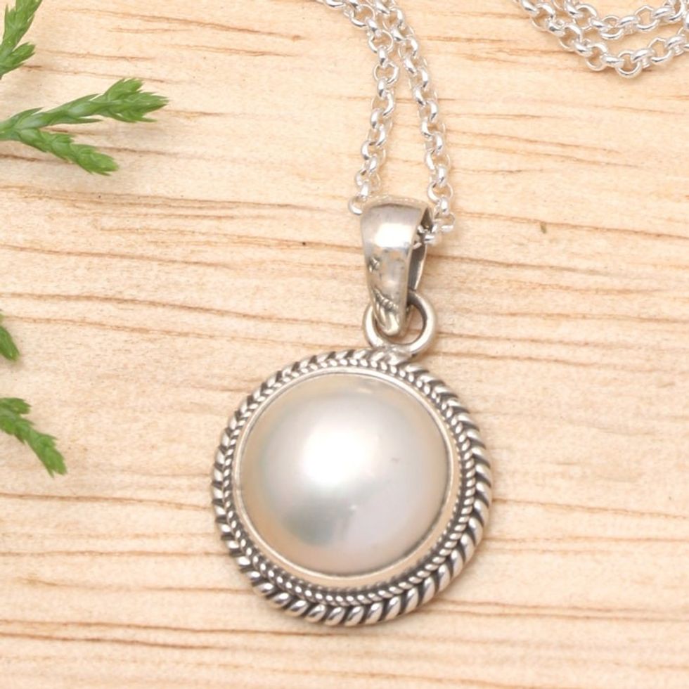 Polished White Cultured Pearl Pendant Necklace from Bali 'Shiny Destiny' Item ID: 2671559060