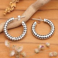 Polka Dot-Patterned Sterling Silver Half-Hoop Earrings 'Polka Dot Trends' Item ID: 2671821007