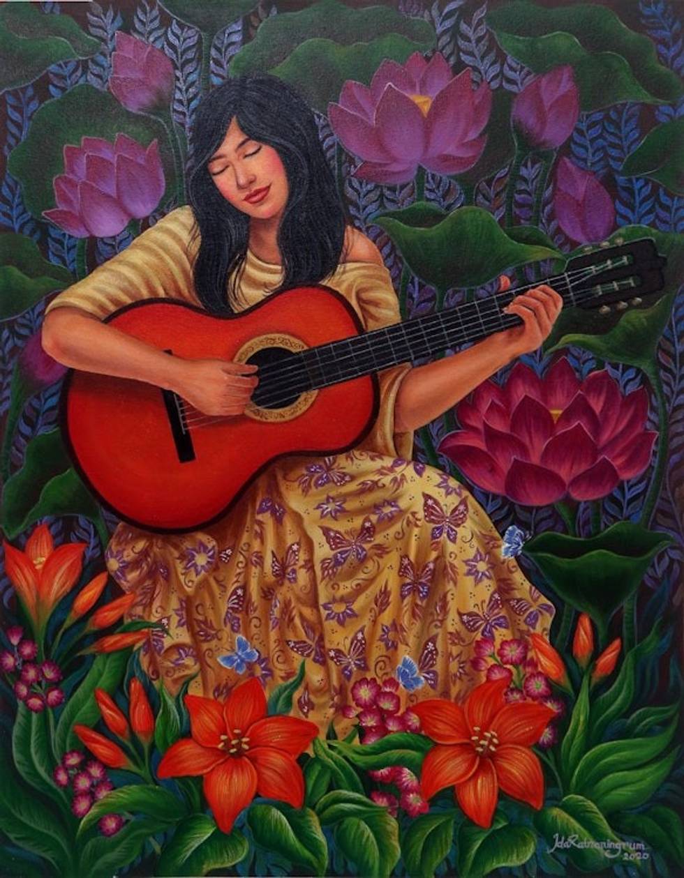 Portrait of a Woman with a Guitar Painting from Java 'Song of My Guitar' Item ID: 2669889155