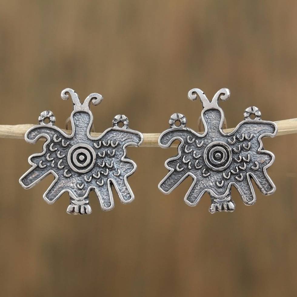 Pre-Hispanic Butterfly Sterling Silver Button Earrings 'Pre-Hispanic Butterflies' Item ID: 2671808897