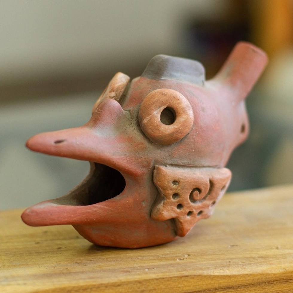 Pre-Hispanic Ehecatl Wind God Ceramic Ocarina Flute 'God of the Wind' Item ID: 2671808023