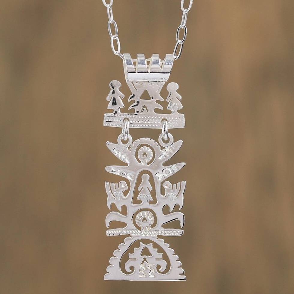 Pre-Hispanic Sterling Silver Pendant Necklace from Mexico 'Pre-Hispanic Tree of Life' Item ID: 2669931853