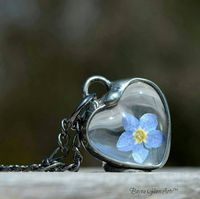 Pressed Flower Jewelry, Real Forget-Me-Not Heart Charm Necklace, Quality Glass Jewelry Gift for Girlfriend, Valentine's Day Gift Item ID: 2670450077